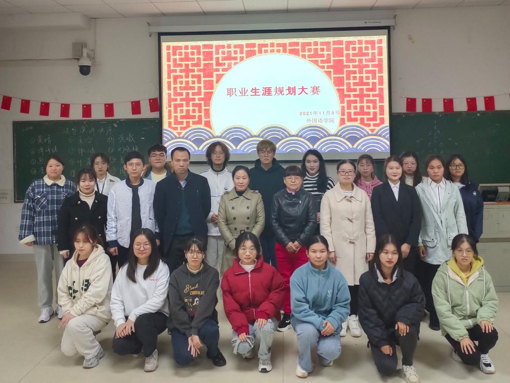 2021年11月8日晚,外国语学院在612举办“不负韶华筑梦未来”大学生职业生涯规划大赛决赛。学院党委书记张平、党委副书记周艳红、组织员罗竹莲、学工办主任兼分团委书记张伟平、日语专业教研室副主任蒋慧芳及全体辅导员出席本次比赛并担任评委。