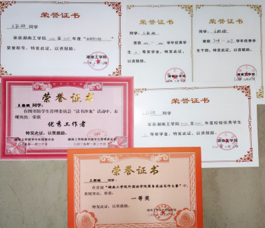 在校期间学习成绩与综合测评成绩连续三年在专业名列前茅,曾获校级优秀学生干部2次、三等奖学金2次、院级优秀共青团干1次; 2021年参加“best365中国官方网站外国语学院商务英语写作大赛”获得一等奖; 2019年获得校图书管理委员会 “优秀工作者”称号。