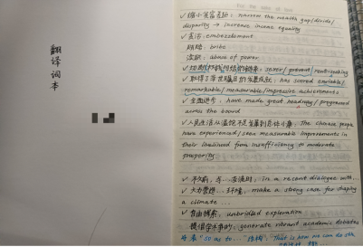 上外贸不考词条的,但我那时候也每天都在积累词条,翻译总归是用到一些固定表达的,我是用Anki来积累的,还有在平常看书的时候准备了一个翻译词条本如图