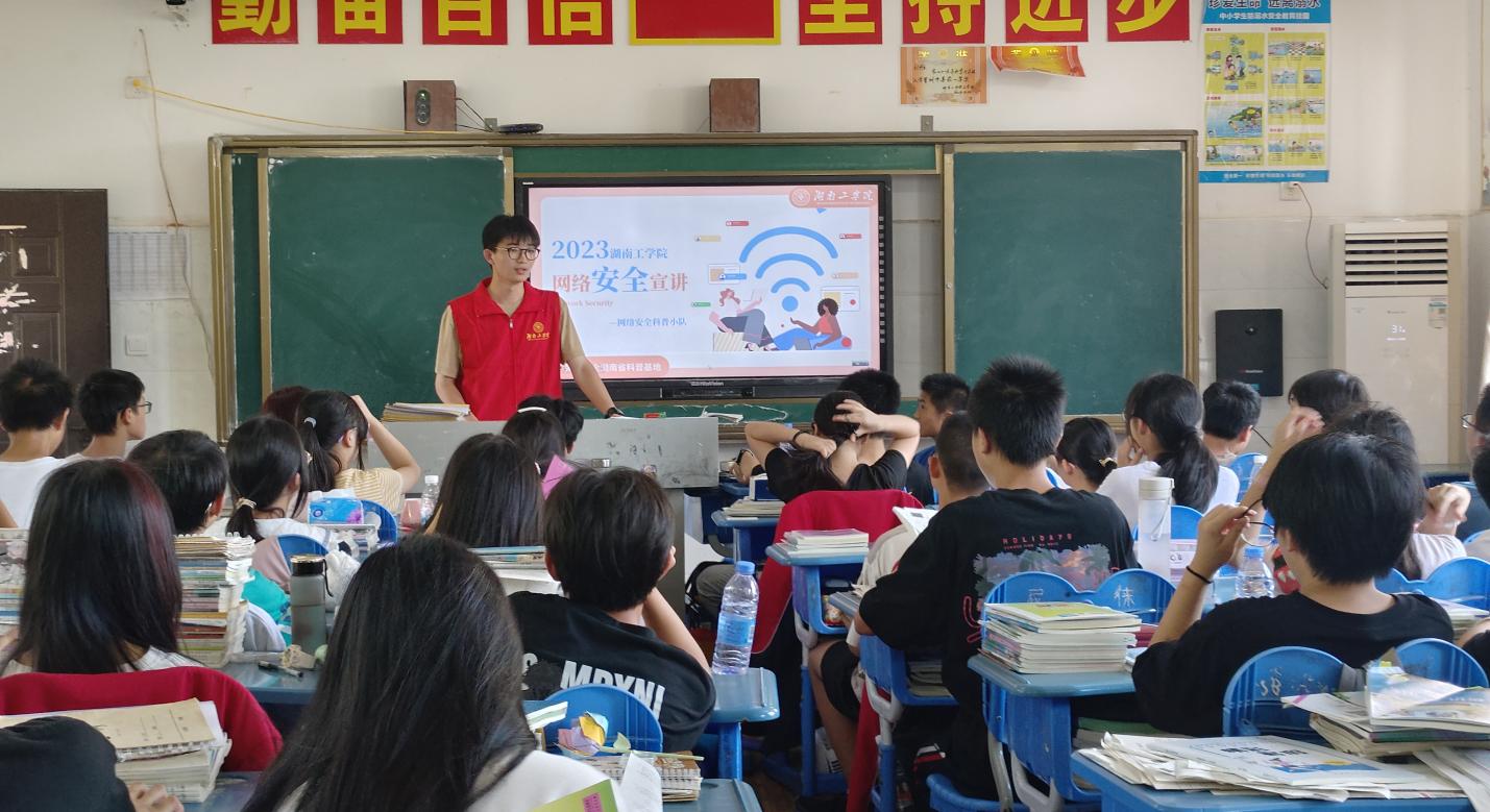 为助力推动“双减”政策,团队联系祁东县栗山学校开设了网络安全科普课程,开展了一堂生动有趣的网络安全宣讲课。通过讲解时事案例与小游戏互动,成功引起了学生们的浓厚兴趣。宣讲中,成员们向学生们讲述了网络安全的基本知识和防范措施例,包括如何创建安全的密码与如何识别网络欺诈等实用技巧。同时,团队也强调了网络安全与乡村建设的紧密联系,鼓励学生们积极参与共建美好乡村的行动。
