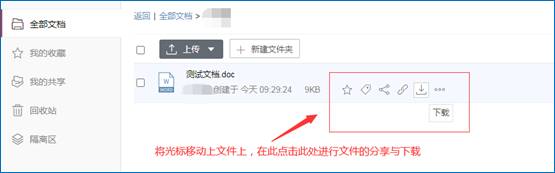 (2)将鼠标光标移动到文件名上,会显示文件的搜藏、分享、下载的按钮,实现文件的搜藏、分享或下载。