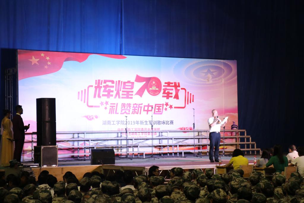9月26日晚7点,以“辉煌70载 礼赞新中国”为主题的2019级新生军训歌咏比赛在学校体育馆热情上演,来自9个二级学院的新生代表,以青春洋溢、充满正能量的歌声献礼新中国70华诞。党委副书记张平,党委委员、副校长曹执令,党委委员、宣传部部长袁勤,学工部部长李文珊、武装部部长刘仁能、保卫处处长陆琼、团委副书记彭国柱、各二级学院党委副书记、新生辅导员和2019级新生共4500余人共同观看了比赛。