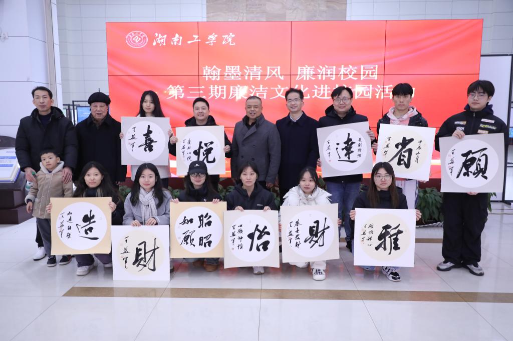 为深入推进廉洁文化建设,营造风清气正、崇尚廉洁的校园环境,学校于12月7日举办了2024年第三期廉洁文化进校园活动。活动在学校图书馆一楼大厅举行,学校党委委员、纪委副书记袁勤,雁城书画院书法名家及best365书法协会的师生齐聚一堂,共同开展以“翰墨清风 廉润校园”为主题的书法作品创作活动。