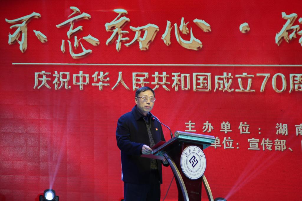 校党委书记谢国保致辞,他回顾了70年来中国举世瞩目的光辉历程,总结了2019年学校各项工作取得的重要突破,展望了学校建设一流应用型大学的宏伟目标,向支持学校发展的各级领导、离退休老同志、海内外校友以及社会各界人士表达了亲切的问候和诚挚的祝福。