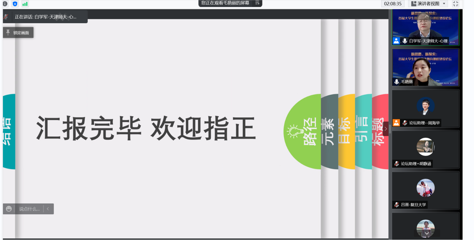 据悉,本次全国首届大学生心理健康教育课程建设论坛由中国心理卫生协会大学生心理咨询专业委员会、国家社科重大项目“国民心理健康素养及其提升机制与对策”课题组主办。大会主要研讨大学生心理健康教育课程建设的新思路和未来的发展路径,本次论坛中,来自北京、江苏、陕西、黑龙江、甘肃、新疆等25个省市的121名专家老师进行报告交流,超过1.6万人在线参与。首次实现在全国范围系统性呈现过去30多年专家学者们在高校心理健康教育领域的成果。