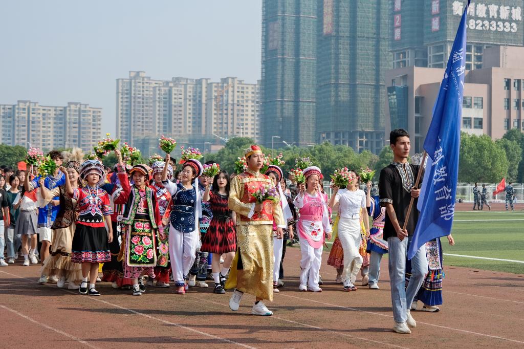大会在雄壮的国歌声中拉开序幕,五千多名新生目光坚定,以饱满的精神面貌,整齐划一的动作展示军训会操的累累战果,嘹亮的口号声响彻整个操场。由1000名新生共同展示出的数字方阵点燃了整个现场,匕首操、枪操方阵学子们快速敏捷的动作展示出湖工学子的昂扬斗志和青春朝气。伴随着分列式进行曲,由13个学院以及学工等方阵组成的58个军训连方阵队昂首阔步,依次通过主席台,接受校领导检阅,同学们摆臂抬腿的每一个动作,勇往直前的每一个步伐,都是对青春和理想最有力的宣告。由教官们带来的摔擒表演再次将气氛推向高潮,引来阵阵喝彩。