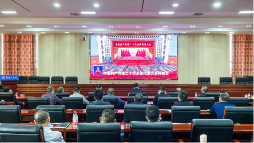 全体校领导、机关党委各支部书记、综合教学大楼各职能部门负责人收看中国共产党第二十次全国代表大会开幕会。