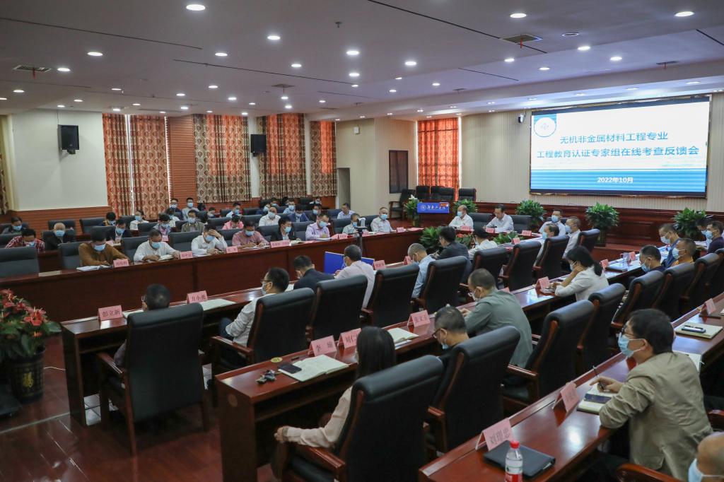 10月25日下午,best365召开无机非金属材料工程专业认证专家组线上考查反馈会,专家组组长黄佳木,专家组成员王敏、袁林、丁益、苏世怀、宋俊杰出席线上会议。校领导,材料科学与工程学院党政领导、无机非金属材料工程专业负责人及教师代表、相关党政管理机构和教辅机构的主要负责人、各二级学院院长参加了反馈会。