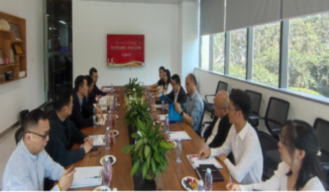 在加洲建设集团考察期间,深圳市衡阳商会会长邹海鸥先生携加洲建设集团董事长周佩、深圳市允强科技有限公司总经理邹红生、深圳市普雷德科技有限公司董事长王志科、广东阿尔法律师事务所创始合伙人谢清送、清华大学深圳国际研究生院刘厚德教授与哈尔滨工业大学(深圳)刘聪博士等商会成员代表与曹执令进行了座谈交流,双方探寻商会企业与学校合作契机,曹执令表示学校愿意在人才培养与技术支持等方面与商会企业进行合作,并热情邀请商会企业来校指导交流。