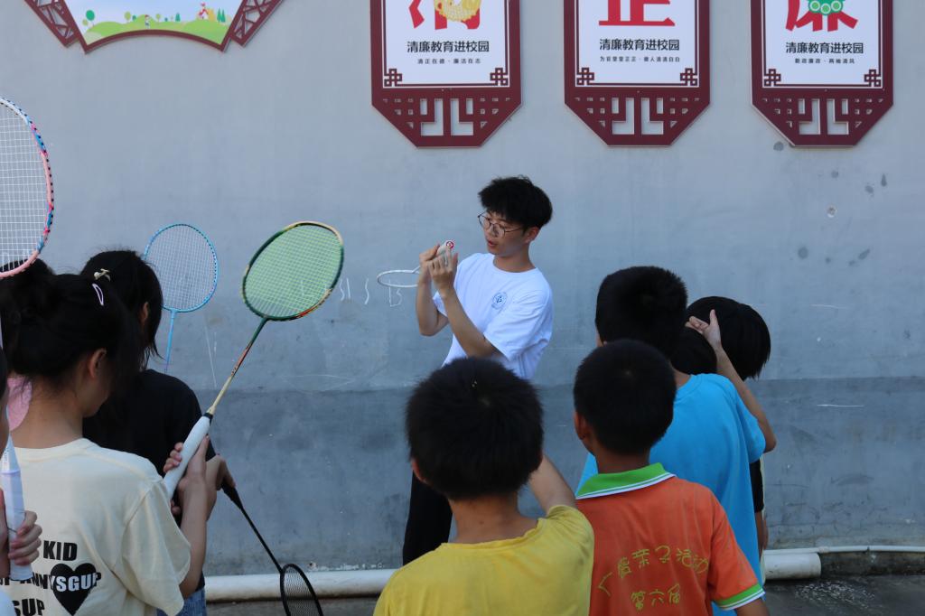 课间,实践团还带领同学们学跳用健身舞蹈配上流行歌曲《少年》,教授孩子们基本的羽毛球技能,操场上飞舞的羽毛球划出一道道弧线,在所有人都留下难忘的回忆。