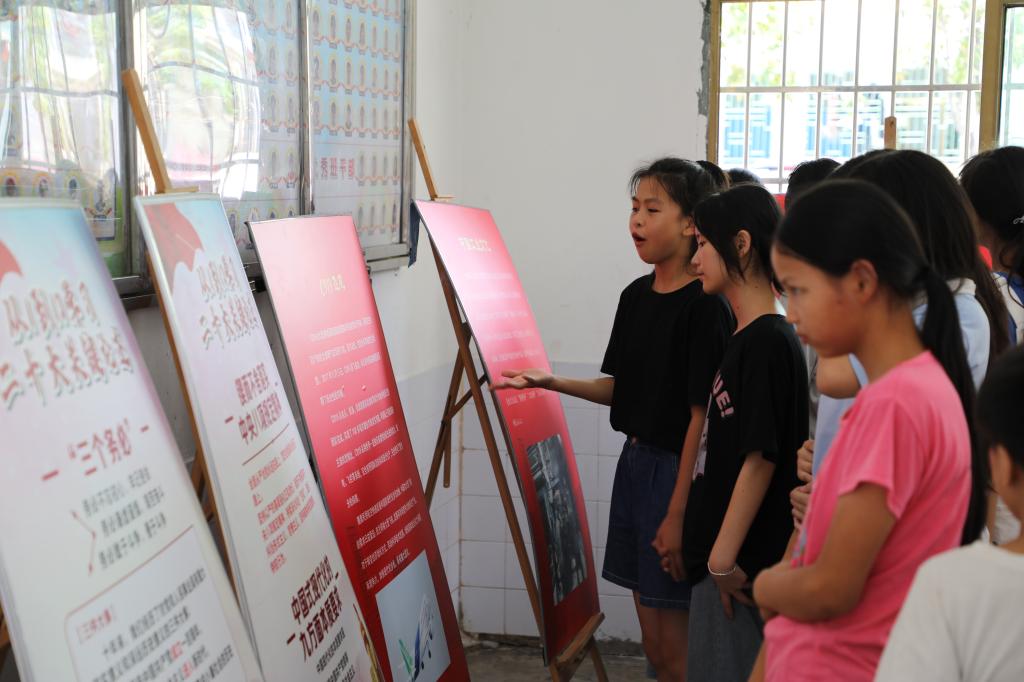 队员们与中小学生一起同读 “开国元勋罗荣桓”和“铁血男儿夏明翰”的事迹,朗诵红色诗歌《祖国妈妈》,同唱红色歌曲《我和我的祖国》,通过衡阳本土红色文化宣讲和红色艺术课堂,帮助小学生们认识家乡的红色故事和红色人物,将红色的种子深植于孩子心中。