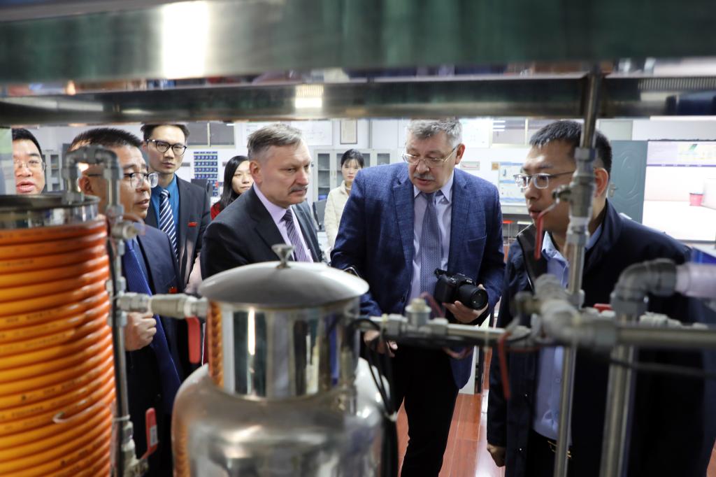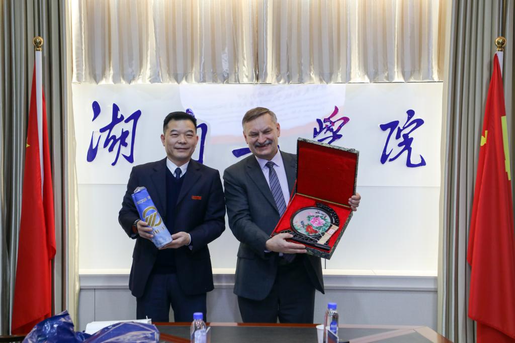 会后,两校领导交换了礼物并合影留念,俄罗斯伊万诺沃国立动力大学一行还深入汽车研究院、工程训练中心、电气与信息工程学院相关实验室,就合作办学项目的实施及相关专业实验实训的管理运行情况进行了深入交流。