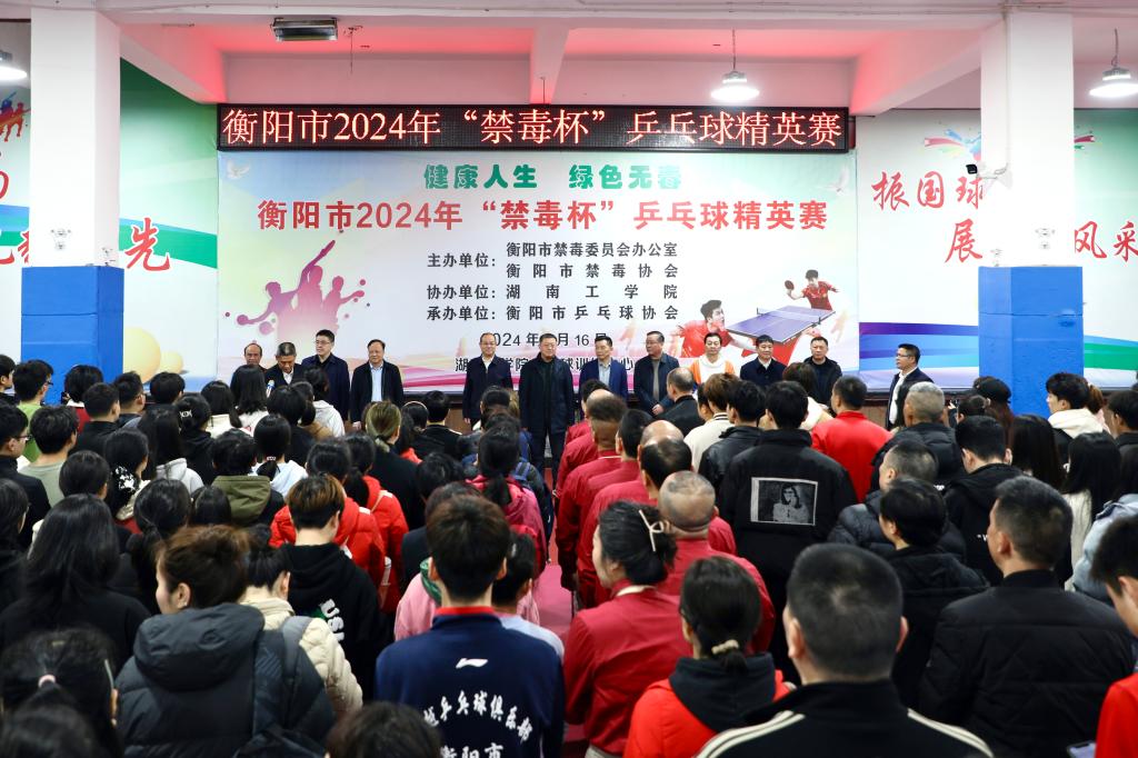 3月16日,以“健康人生 绿色无毒”为主题,衡阳市2024年“禁毒杯”乒乓球精英赛在best365乒乓球训练中心举行,进一步普及禁毒知识,增强全民禁毒意识,引导人民群众树立积极向上的健康生活理念。校党委书记曹执令,校党委委员、纪委副书记袁勤出席比赛开幕式。衡阳市委常委、市委政法委书记、市禁毒委第一副主任陈礼洋宣布开赛。