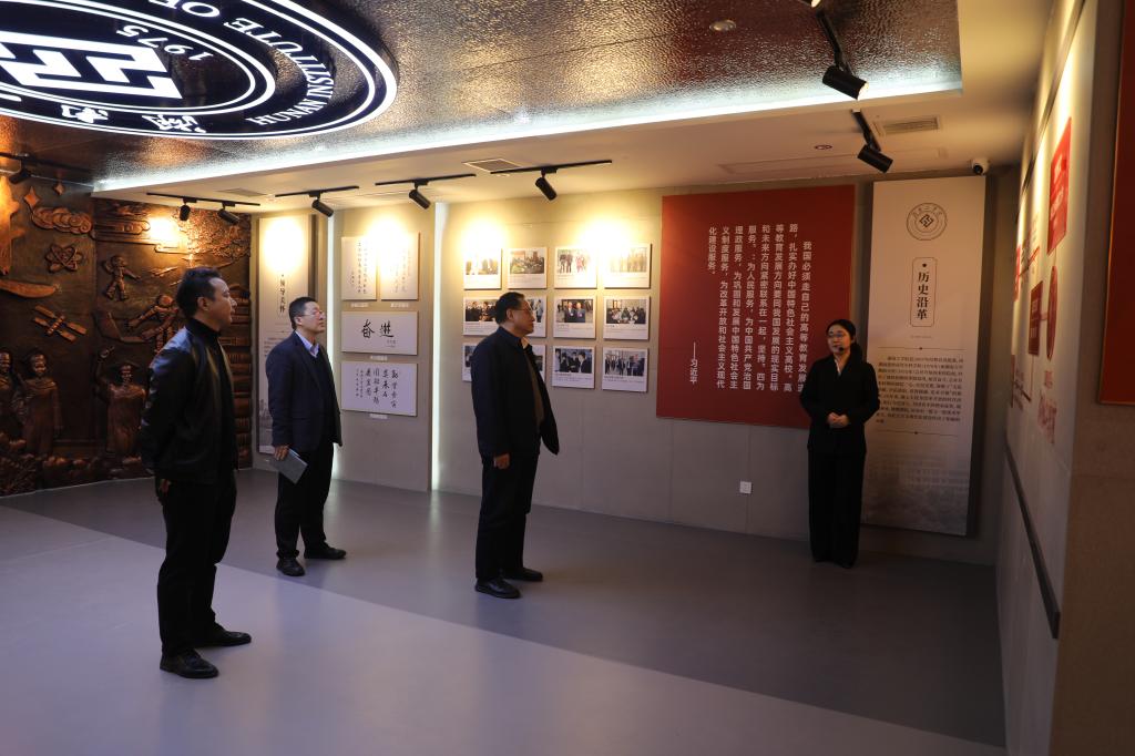 在校史馆,刘朝晖认真听取讲解,详细了解学校办学历史、发展沿革、办学成果以及在人才培养、科学研究和服务地方经济社会发展等方面取得的成绩。刘朝晖表示,校史是学校宝贵的精神财富,要进一步挖掘和弘扬学校优良传统,充分发挥校史文化育人功能,凝聚推动学校高质量发展的奋进力量。