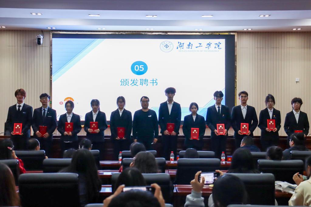 工作人员宣读了大学生通讯社章程和第五届大学生通讯社新任学生干部名单。党委宣传部、统战部领导和老师分别为大学生通讯社新任干部颁发聘书。