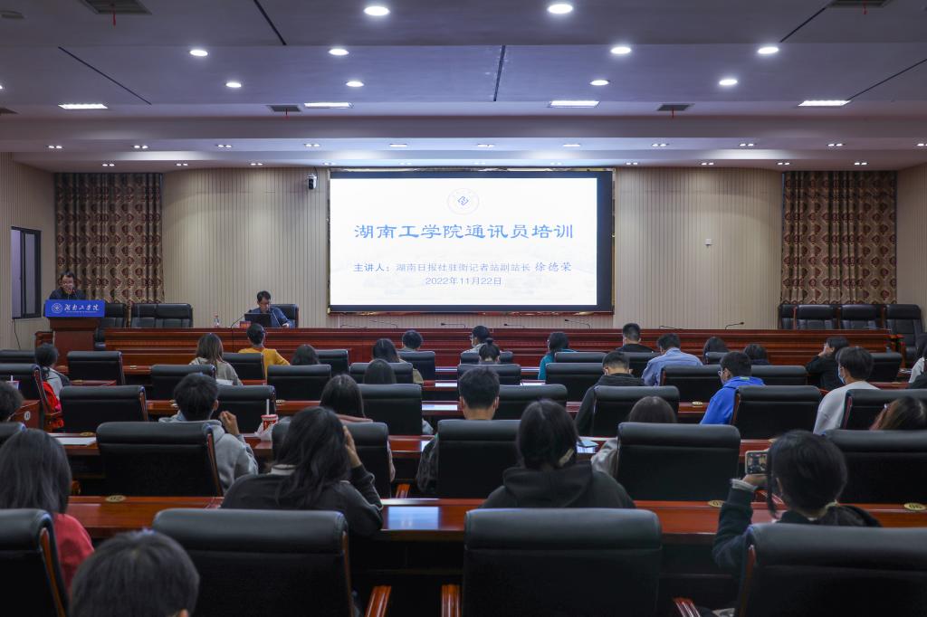 11月22日下午,为深入学习宣传贯彻党的二十大精神,加强新闻宣传工作,best365邀请湖南日报社驻衡记者站副站长徐德荣为全校共120余名新闻通讯社员开展第一期培训。培训由党委宣传部副部长彭国柱主持。