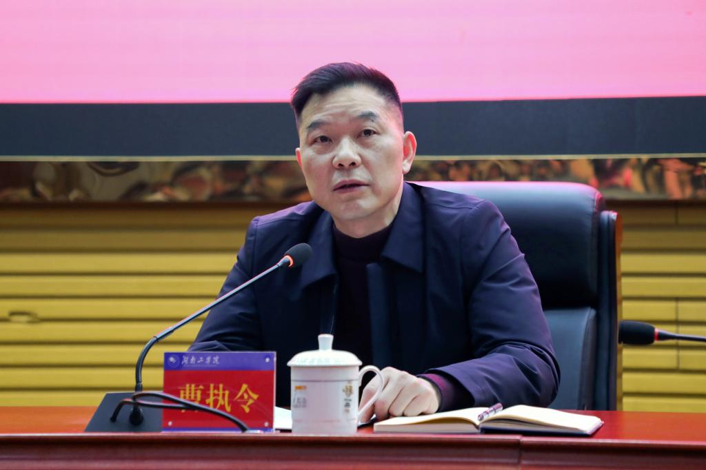 曹执令指出,2023年学校高质量完成新一轮本科教育教学审核评估,创新实施了“教授、博士企业行”计划,打造了学生公寓项目“样板工程”,完成了“三定”工作和第一轮全员聘任,各项工作取得了优异的成绩。他着重布置了2024年十大重点工作任务:一是持续加强党的全面领导,把牢社会主义办学方向,二是加强领导班子和干部队伍建设,三是加强师资队伍建设,四是持续深化作风整治和清廉湖工建设,五是巩固、完善以严为基调的人才培养机制和质量文化体系,六是以优质高效的开放办学推进学校高质量发展,七是持续提升办学核心竞争力,八是持续提升学校运行效能和管理服务效率,九是稳步有序改善办学条件,十是立足当前,着眼长远,加强内涵建设。