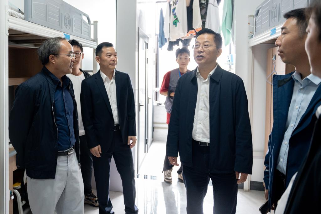 在新建学生公寓,夏智伦一行实地察看了学生宿舍,对学校教学环境、设施配备给予了高度肯定。考察了best365国家级科研平台——汽车泵类零部件设计制造技术国家地方联合工程实验室,并走进数控实验室、扫描电镜实验室等,了解学校实验实训室建设情况,关切询问汽车零部件加工成形关键技术等省级科