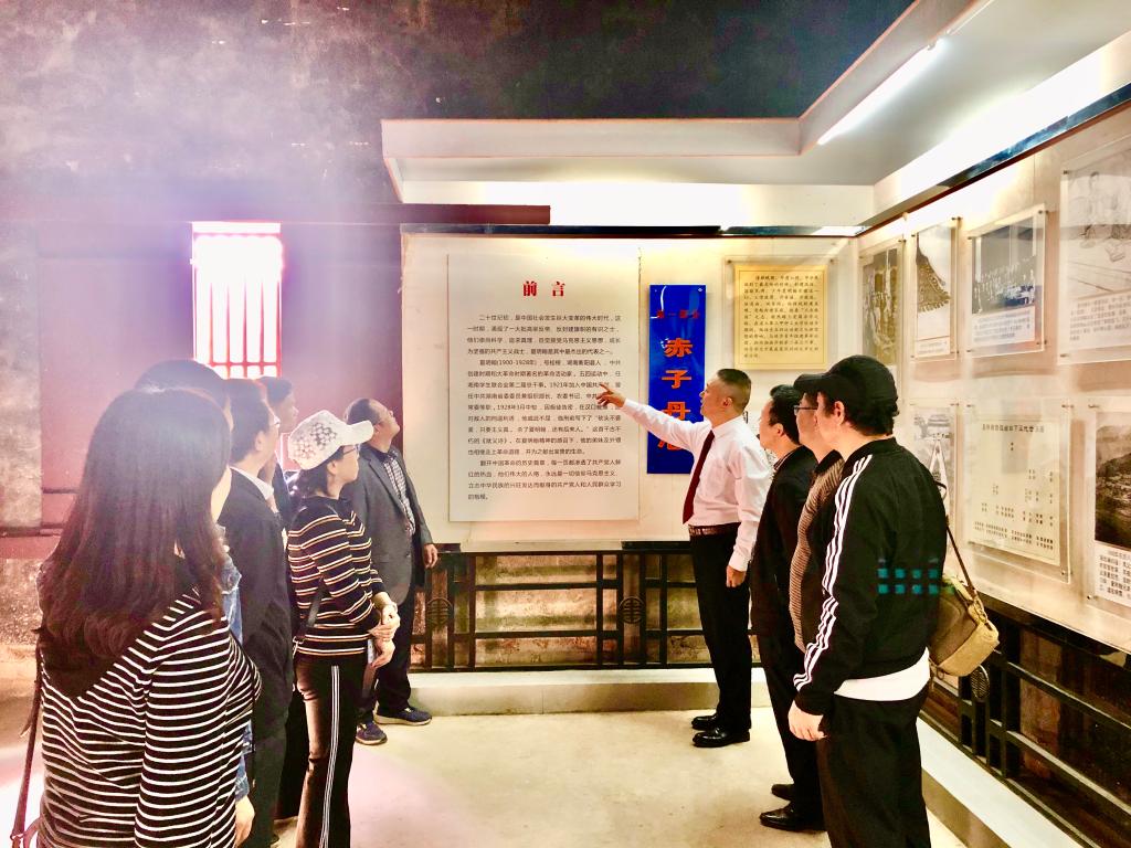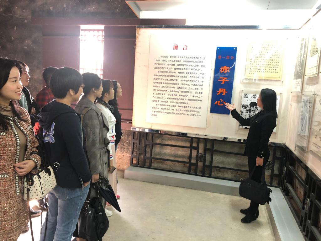 在夏明翰故居,一张张照片、一幅幅图画、一件件实物,述s说着夏明翰及其家人一段段可歌可泣、感人至深的英雄事迹。我们边走边看边讨论,革命者坚定纯粹的内心世界和信仰的力量再一次深深震撼着大家。在夏明翰故居的前坪,讲解员为大家讲述了夏明翰烈士牺牲前的最后三天里,面对敌人的威逼利诱,始终不放弃对信仰的坚守,对真理的追求的革命情怀。参观完夏明翰故居后,大家来到夏明翰广场浮雕前,向烈士敬献花篮,仔细整理花篮缎带,并向夏明翰烈士像鞠躬致敬。