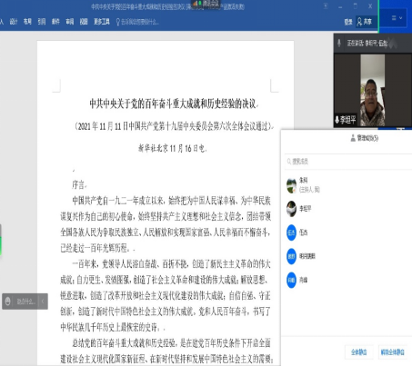 1月5日,校知联会领导班子成员开展中共中央十九届六中全会与省第十二次党代会精神专题学习,学习采取线上学习、讨论方式进行。