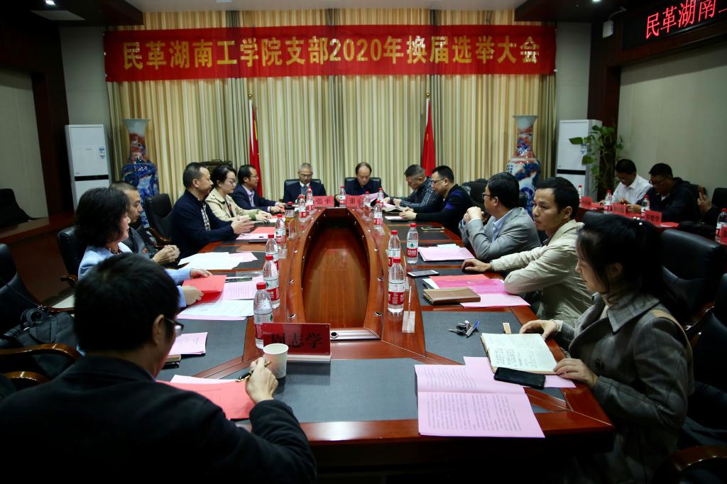 2020年10月20日下午,民革湖工支部召开换届大会,衡阳市政协副主席、民革衡阳市委主委谢肃,学校党委副书记张平,校党委委员、统战部部长杨朗,民革专职副主委袁国华,民革珠晖工委主委周文以及民盟湖工总支主委、九三学社湖工支社主委、best365中国官方网站知联会会长等应邀出席大会,民革湖工支部全体党员参加会议。