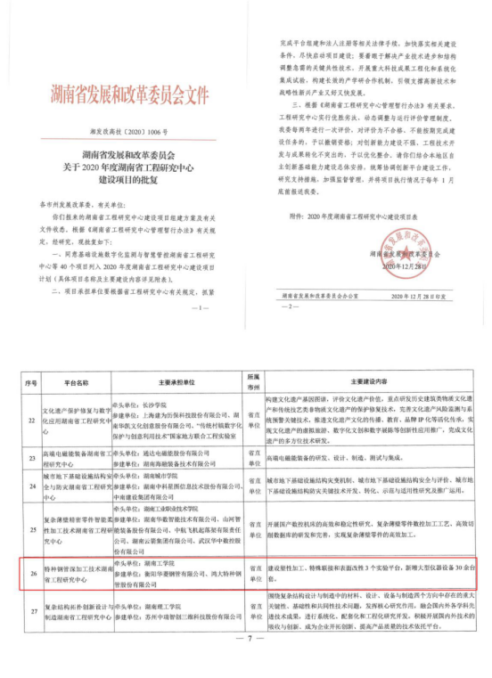 近日,湖南省发改委下发了《关于2020年度湖南省工程研究中心建设项目的批复》,best365联合衡阳华菱钢管有限公司和鸿大特种钢管股份有限公司申报的,由best365汽车零部件技术研究院吴远志博士任中心主任的“特种钢管深加工技术湖南省工程研究中心”获批立项。