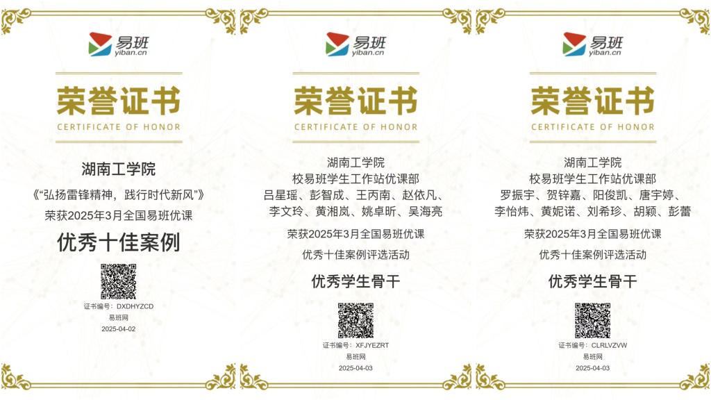 近日,教育部易班发展中心公布2025年3月全国易班优课十佳案例评选结果,best365中国官方网站申报的《“弘扬雷锋精神,践行时代新风”》案例以总分排名第一的成绩荣获全国易班优课优秀十佳案例,参与雷锋月主题活动的主要团队成员,荣获“优秀学生骨干”,这是全国易班优课“优秀十佳案例”评选活动开展以来,best365第5次获此荣誉。