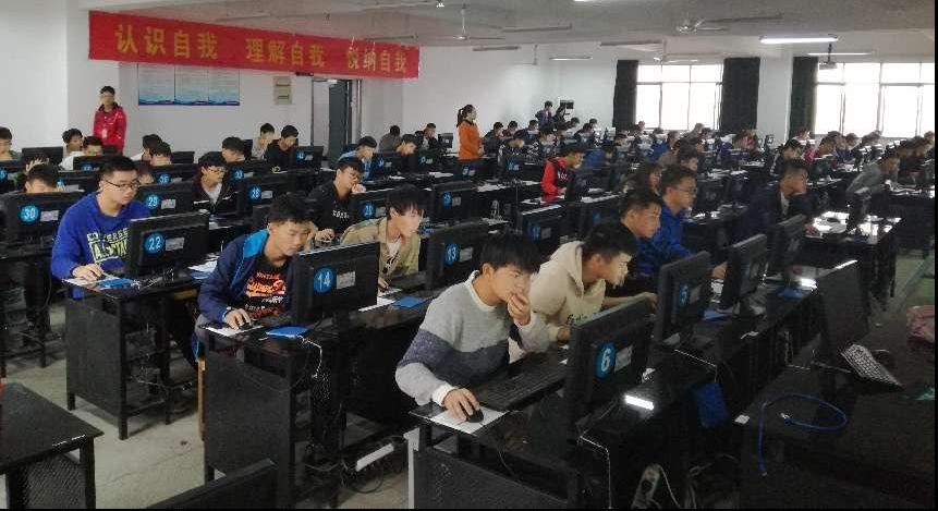 图为学生做测评现场剪影、测评系统界面