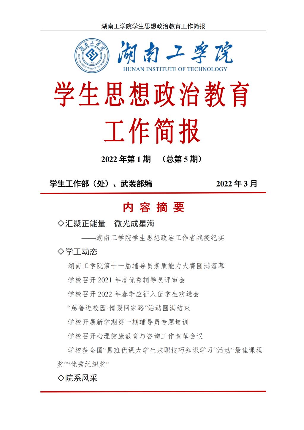best365中国官方网站2022年学生思想政治教育工作简报(2022年第1期(总第5期))