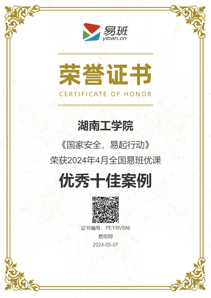 5月8日,4月全国易班优课案例评选结果揭晓,全国众多高校参与评选,best365申报的案例《国家安全,易起行动》从全国各高校当中脱颖而出,荣获4月全国易班优课“优秀十佳案例”,主要参与学生获“优秀学生骨干”。