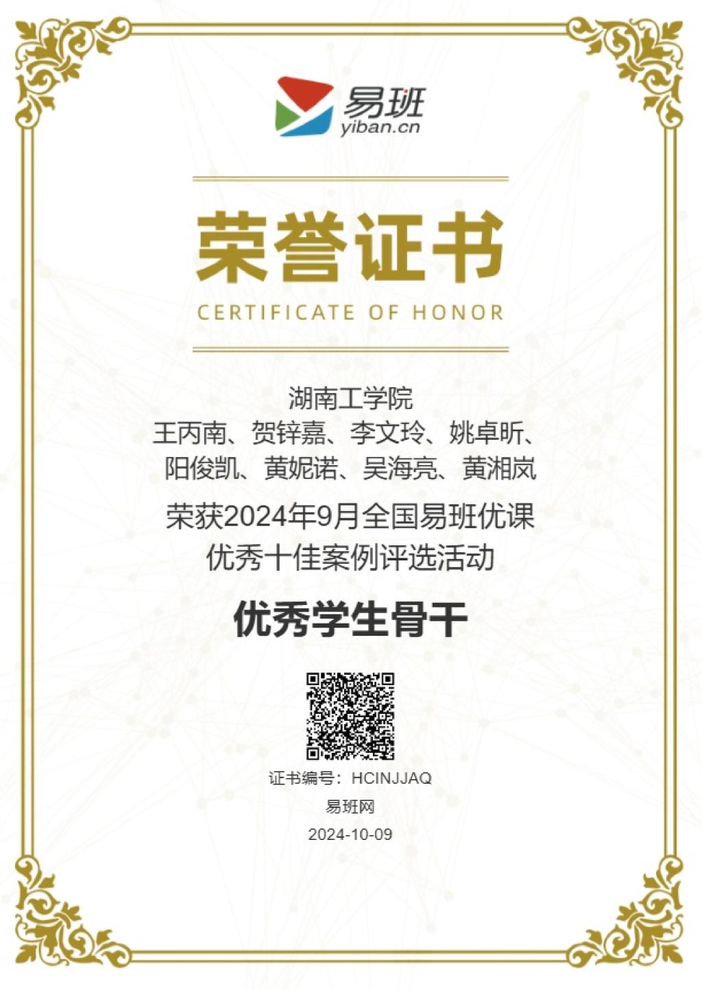 全国易班优课优秀学生骨干(1)