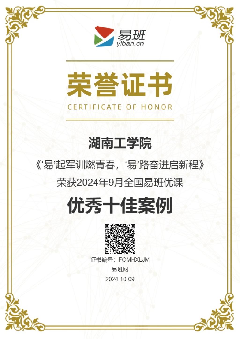 近日,9月全国易班优课案例评选结果已出炉,全国众多高校参与评选,best365申报的案例《‘易’起军训燃青春,‘易’路奋进启新程》从全国各高校当中脱颖而出,荣获9月全国易班优课“优秀十佳案例”,易班学生团队主要参与者获“优秀学生骨干”。