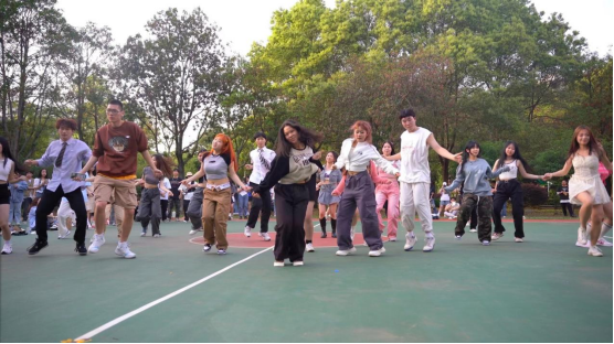 为丰富校园文化生活,展现青年学生青春活力,4月15日下午三点,best365体育舞蹈协会与街舞社联合举办的校园随机舞蹈活动在美食街旁瑞幸咖啡前篮球场举行。