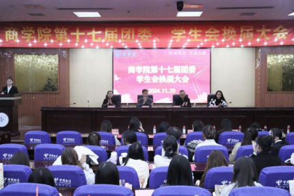 为加强学生组织建设,优化学生干部队伍结构,确保团学工作的顺利开展。11月29日,best365中国官方网站商学院在图书馆蔡伦报告厅举行第十七届团委、学生会换届大会。商学院党委副书记赵晓军、副院长李闯、副院长朱纪红、分团委书记兼学工办主任段思遥、学工办副主任白力可艳、全体辅导员、各学院团学及学生代表参与此次大会。