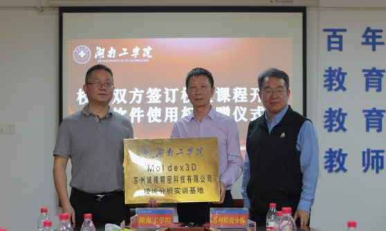 智能制造与机械工程学院副院长王小虎和蔡铭宏共同签署了软件使用权捐赠协议和共建模流分析实训基地协议。