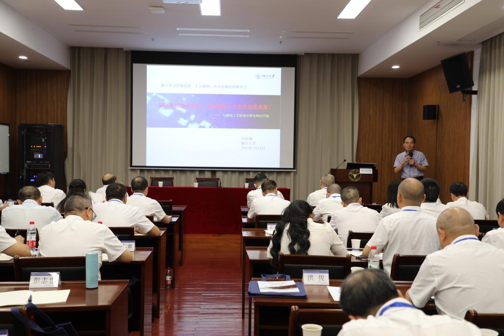 理论教学环节,研修班一行集中学习了《深化高校综合改革,全面提高人才自主培养质量》、《数字校园与高校数字治理》《核心竞争力与高校学科品牌建设》《深学笃行,建设教育强国—深入学习习近平总书记关于教育工作的重要论述》《应用型大学的建设与思考》《高校干部心理压力调适与情绪管理》《科技成果转化之“校”“企”“地”产学研模式探索》《高校教师科研能力提升及科研团队建设》等8个专题。